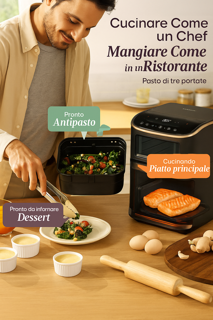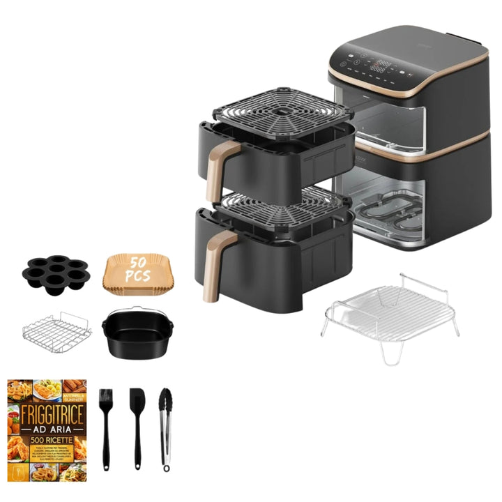 Ricrea a casa il piacere della cucina professionale con la nostra friggitrice ad aria professionale 8 in 1 a con doppio cestello: