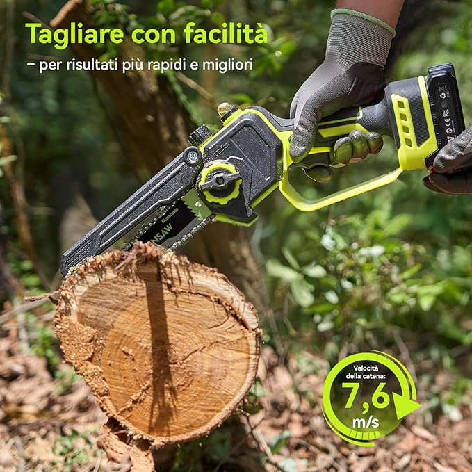 Provate la nostra Mini-Motosega con Asta e forbici senza rischi.